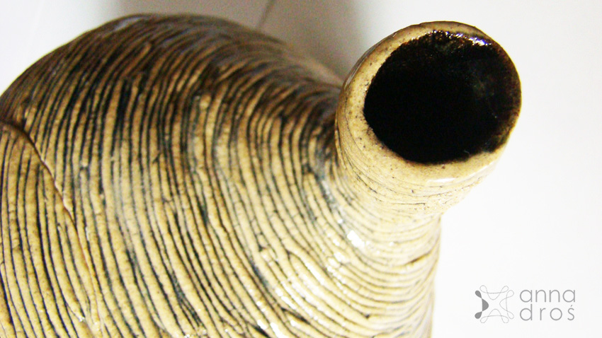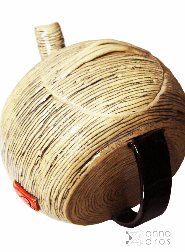 Czajniczek na herbatę/kawę, lepiony ręcznie techniką tzw. z wałeczków. Wysokość 18cm.