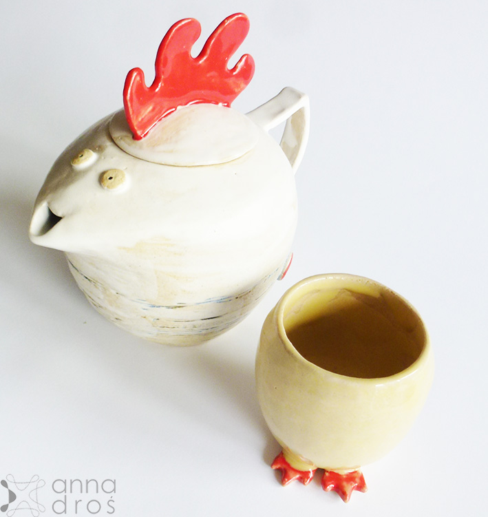 Czajnik na herabatę/kawę, lepiony ręcznie techniką tzw. z wałeczków. Wysokość 18cm.