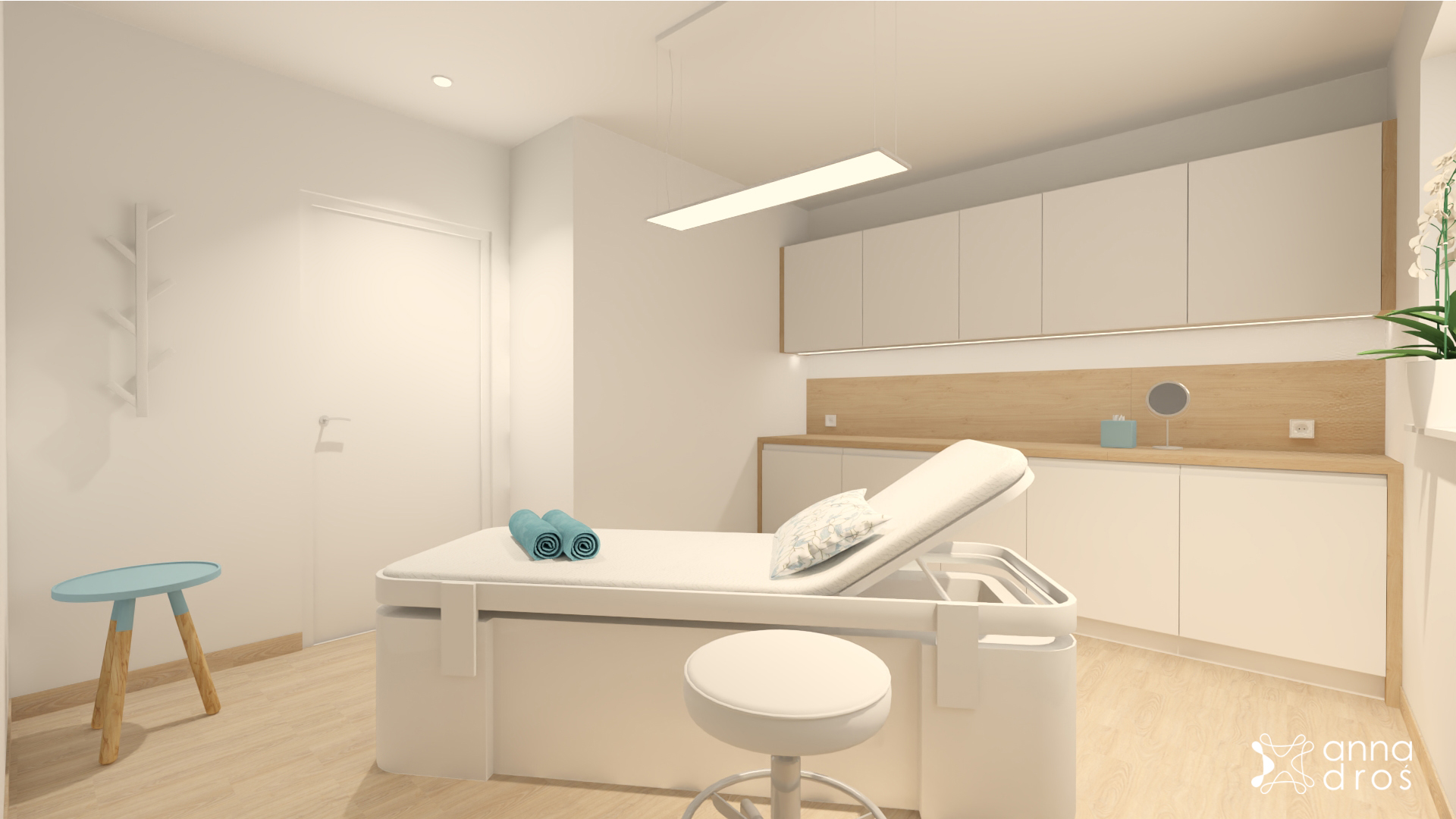 Projekt wnętrz przychodni dermatologicznej w malowniczo położonej miejscowości Buochs w Szwajcarii. Opracowanie obejmowało przestrzeń rejestracji, dwóch poczekalni, zaplecza socjalnego z kuchnią i ośmiu gabinetów. Założeniem projektu było stworzenie wnętrz czystych, jasnych i spokojnych w odbiorze. Piękne otoczenie budynku i duże okna pozwoliły wykorzystać widoki jako niewątpliwy atut wnętrz.